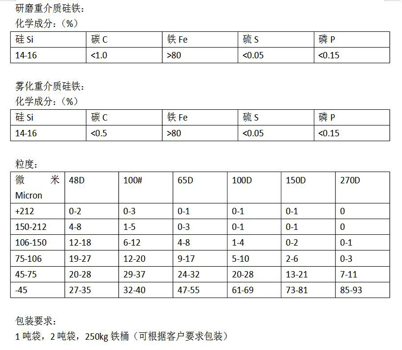 浙江重介质硅铁是一种应用广泛,专门冶炼而成的硅浙江铁合金,具有耐氧化,硬度大,带强磁性等特点,使用后经过筛分和磁选回收,可以返加再利用,因此,使用浙江重介质硅铁的话,有利用降低生产成本。硅铁中含硅量小于13%时,韧性增加,给磨碎制备带来困难,而且在水中易于氧化;当含硅量超过18%时,磁选性减弱不便回收。故以含硅13%-18%,含铁87%-82%的硅铁适合使用,冶炼成块的硅铁需要经过粉碎,研磨后才使用。